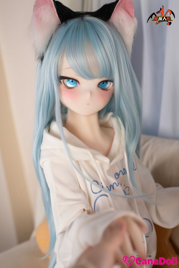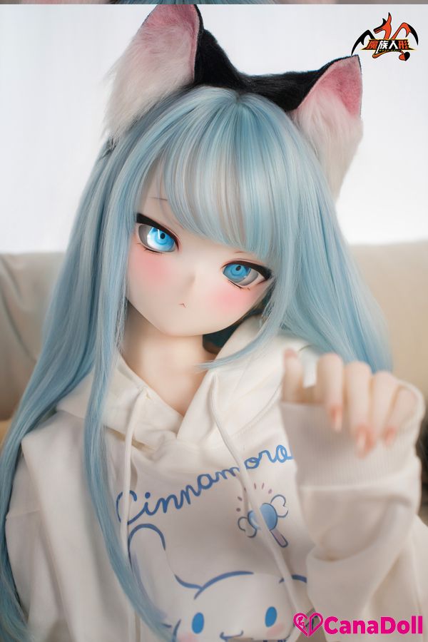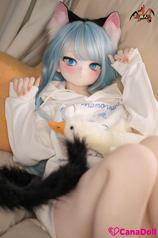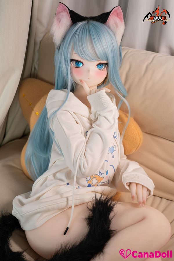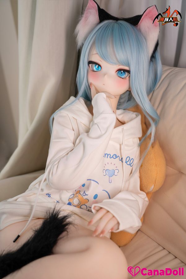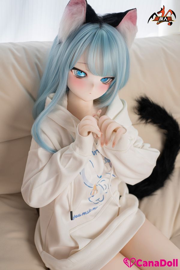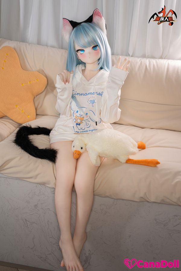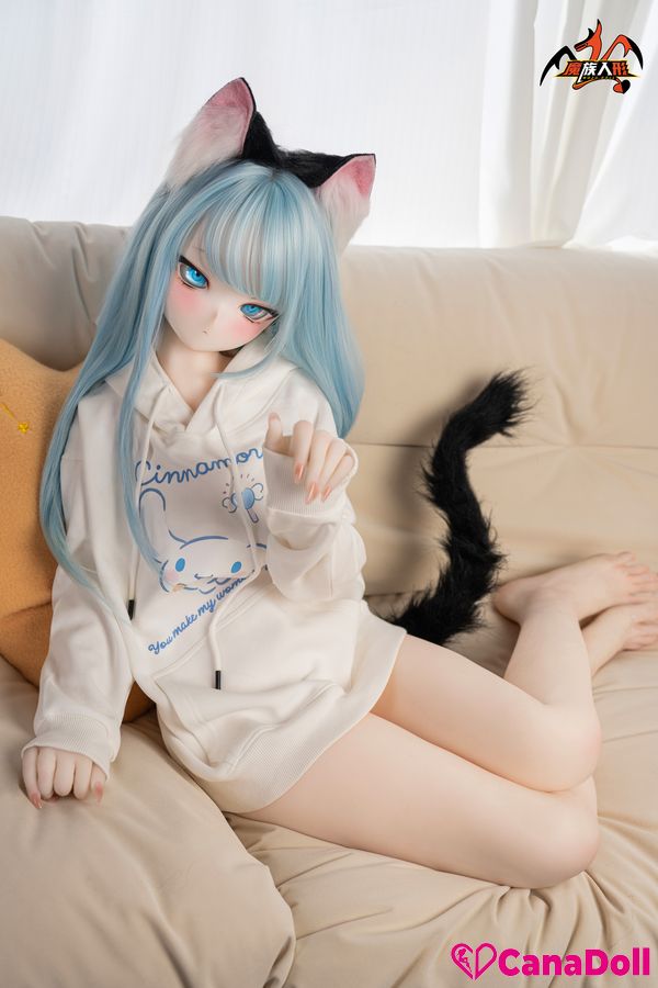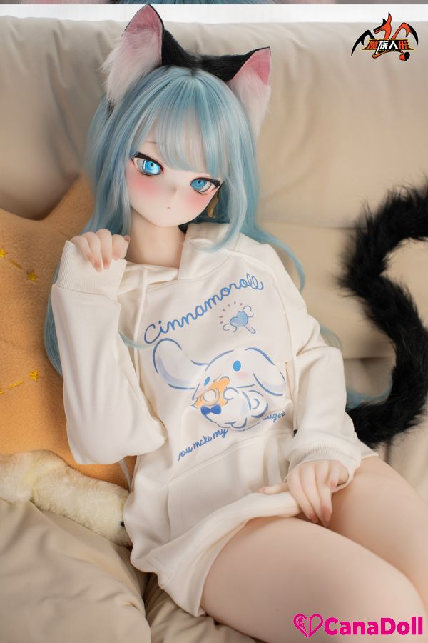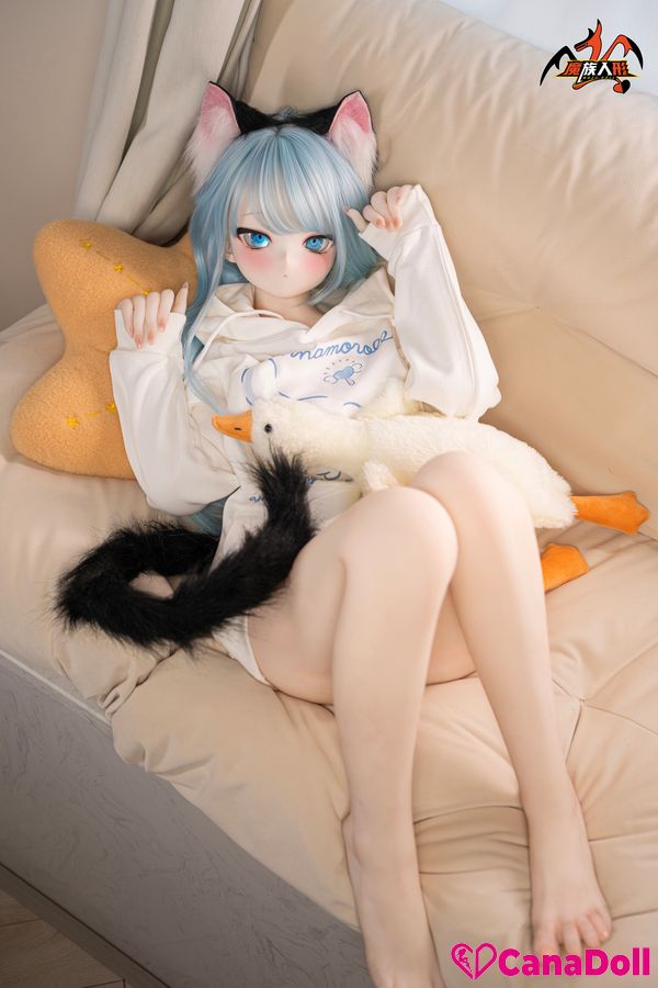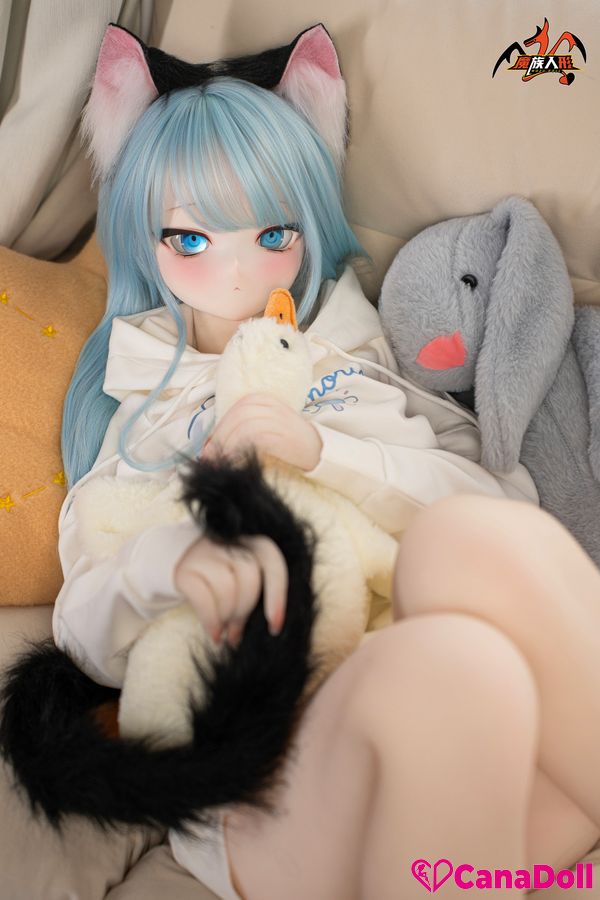 The most eye-catching thing is the playful black cat ear headband above her head, which gently vibrates with her movements, as if a lively little cat is poking its head out. The same cat tail decoration hanging behind her gracefully curves as Vinyl Sex Doll turns around, adding a touch of mystery and allure to the overall look.